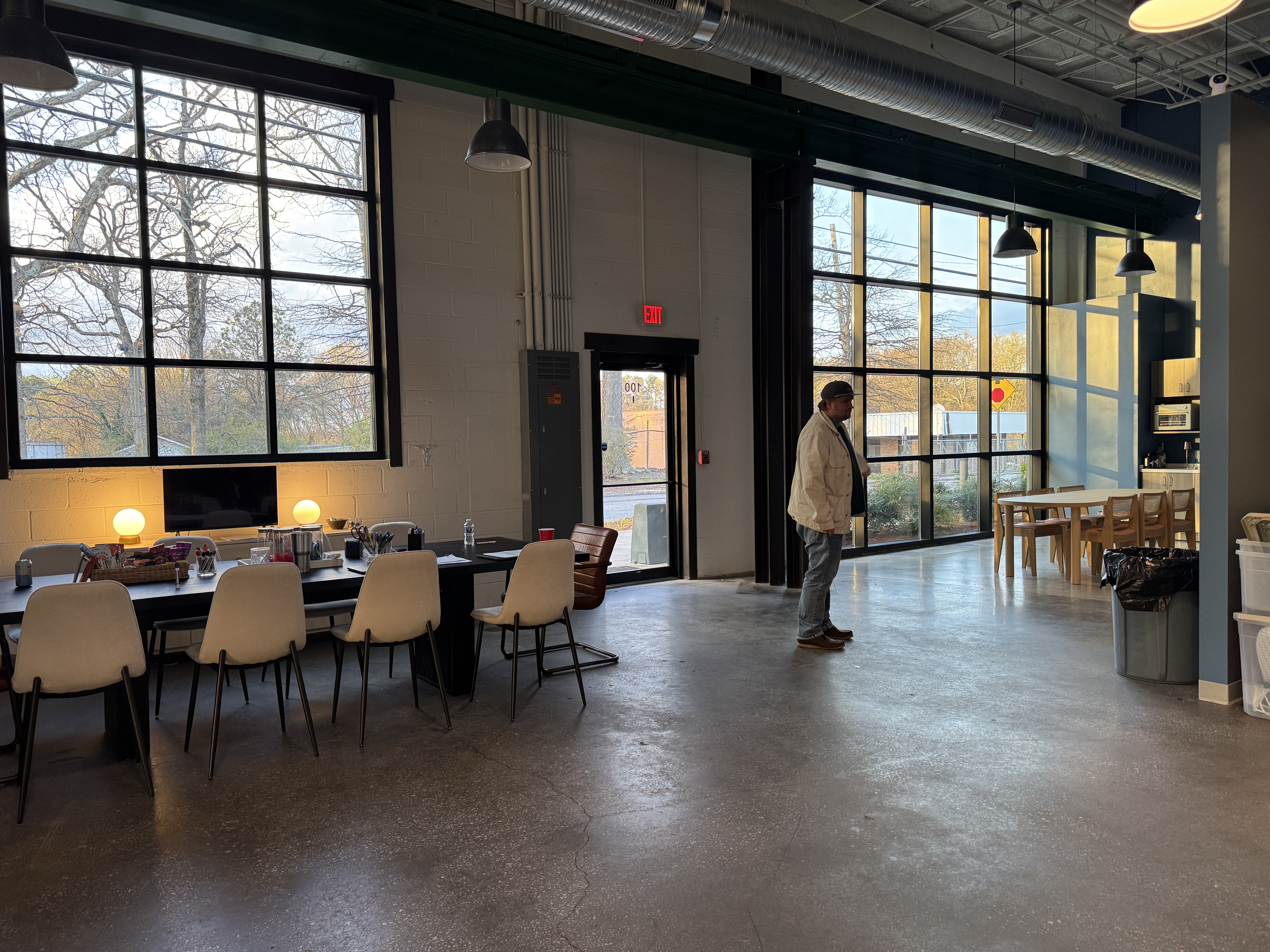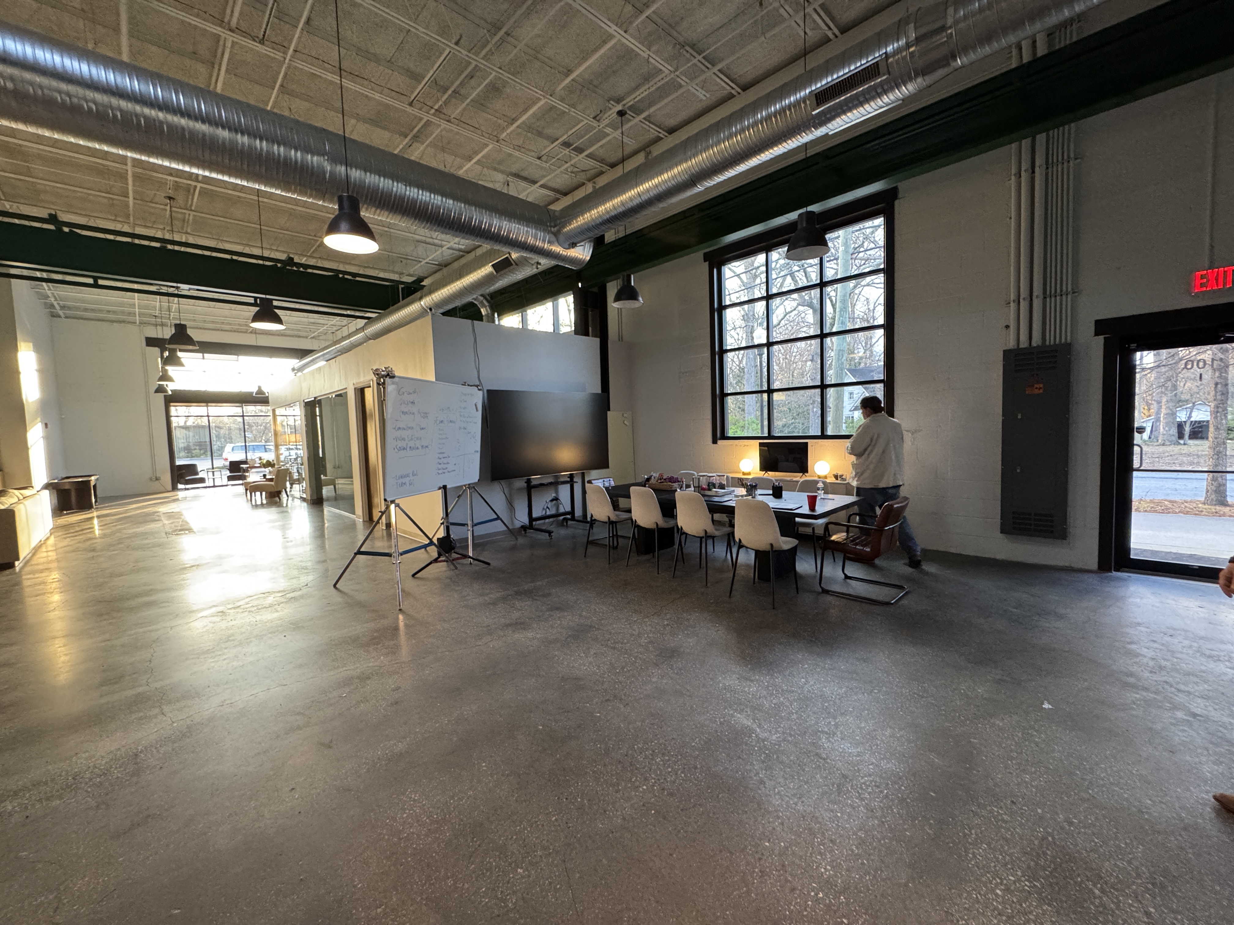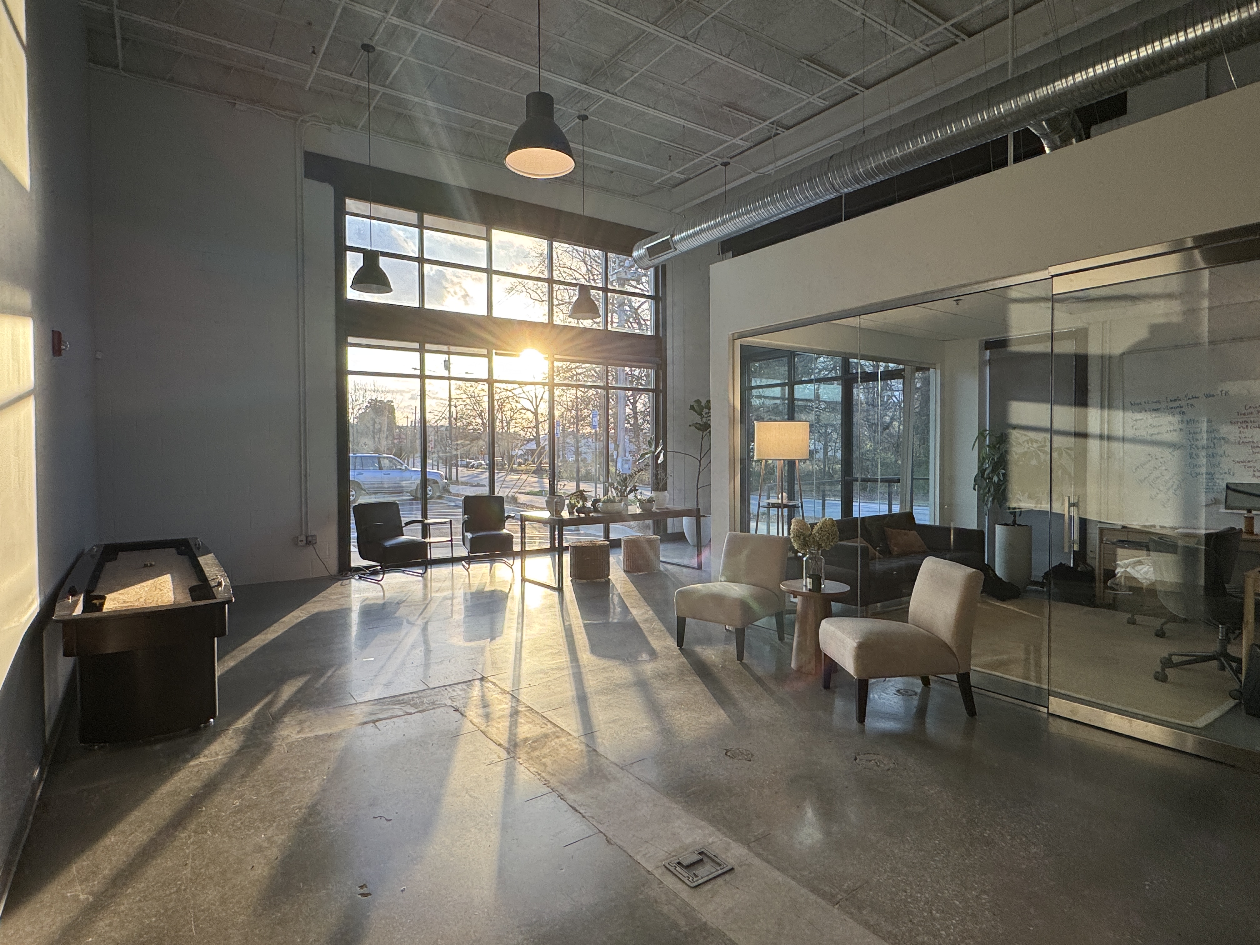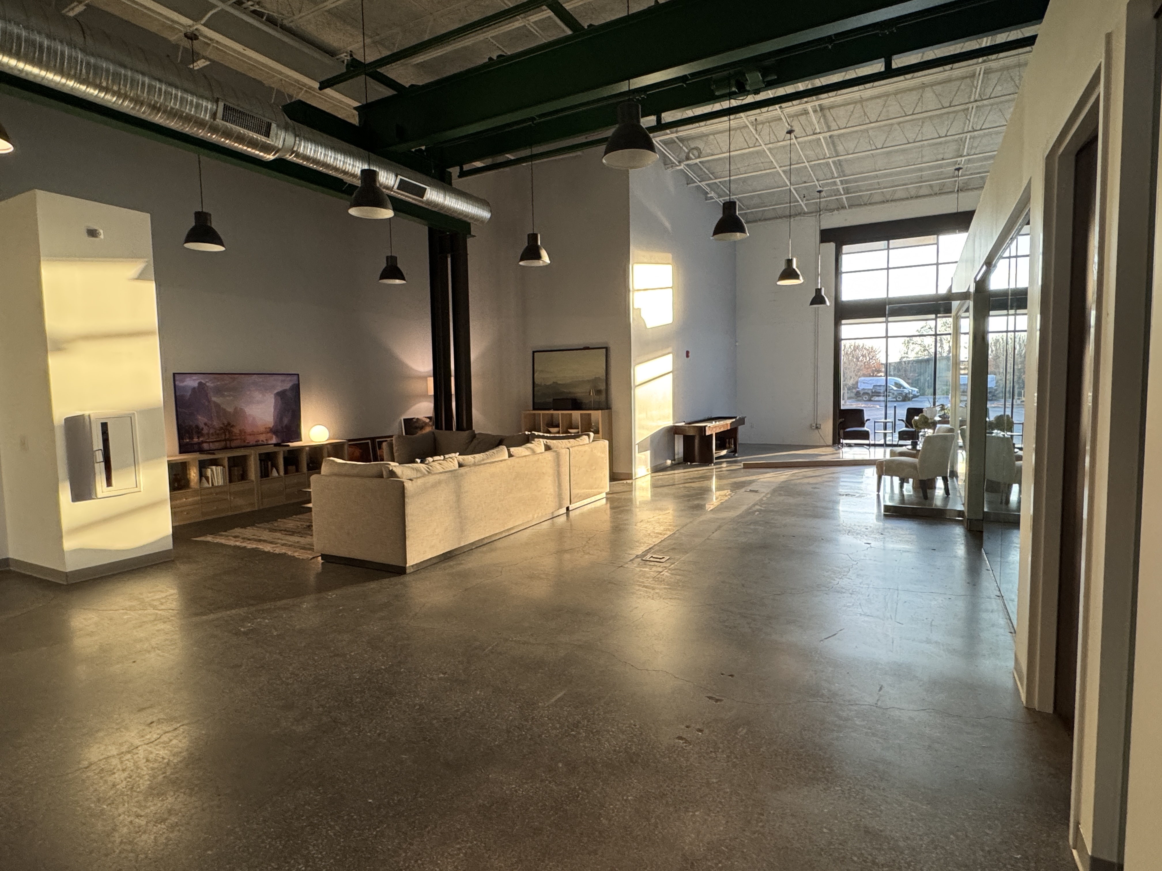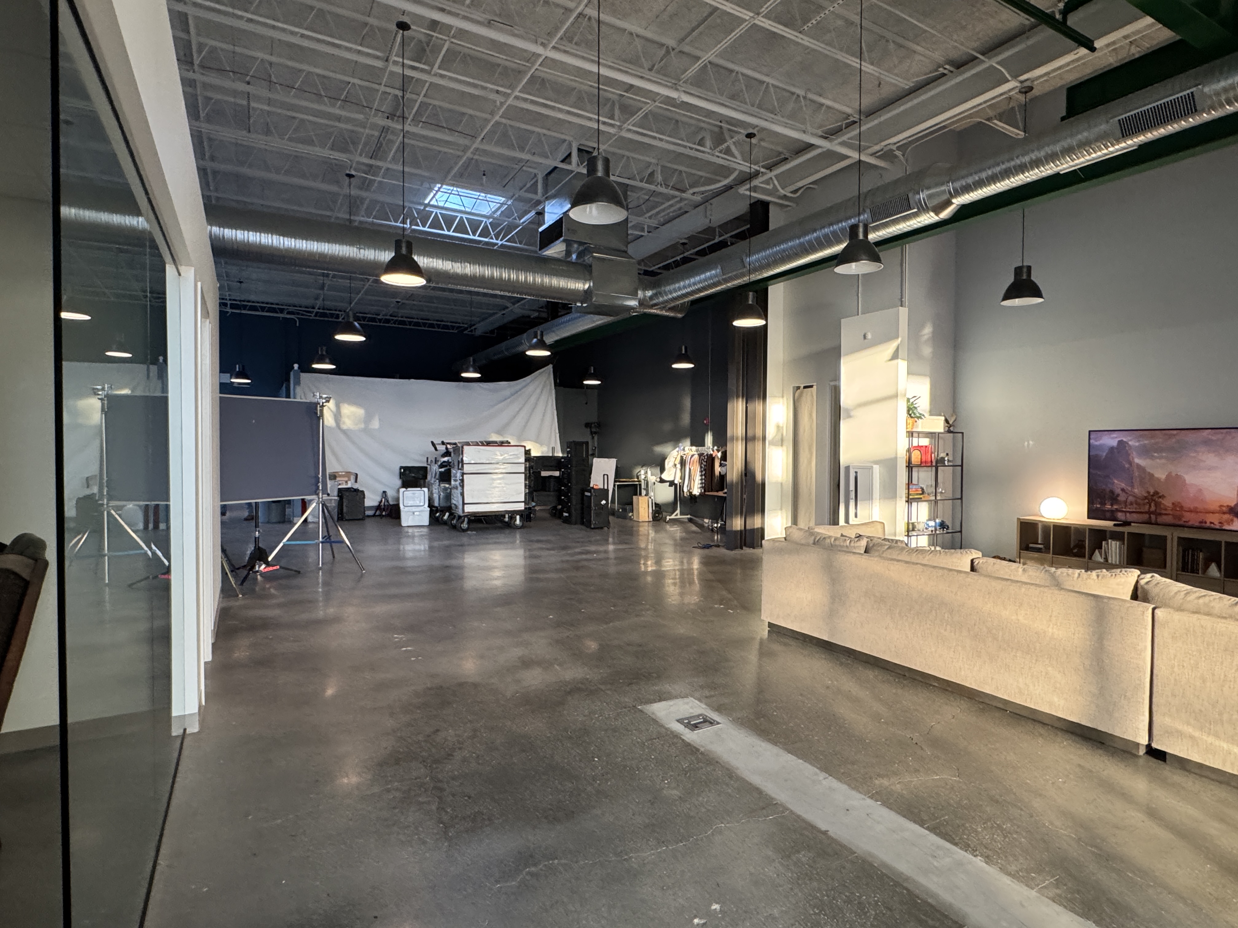 Dynamic, industrial-chic space with exposed brick and polished concrete. Versatile layout suitable for our production needs.